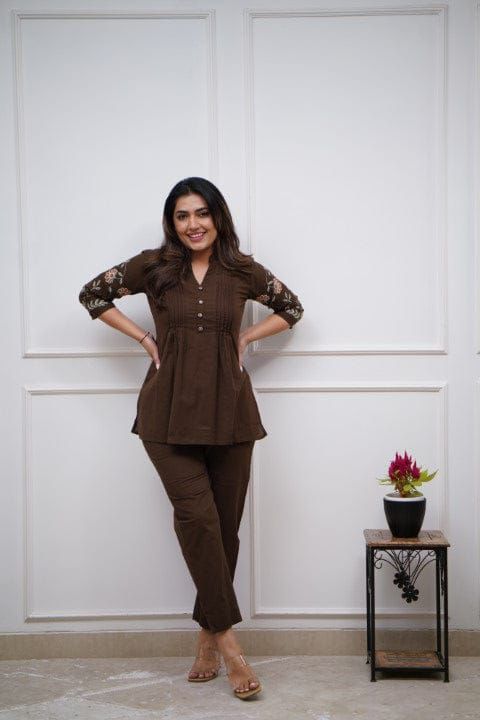 This outfit is a stylish and comfortable navy blue co-ord set, perfect for casual outings, office wear, or small gatherings.